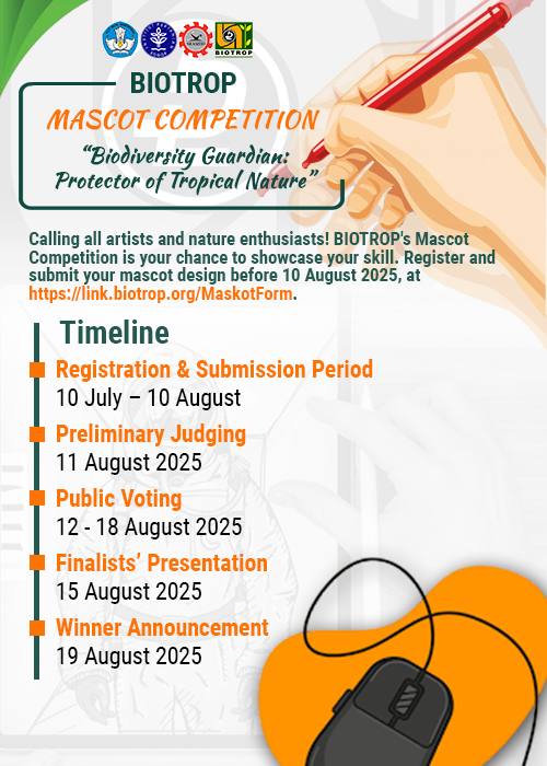 SEAMEO BIOTROP invites submission of scientific manuscripts (Research Paper, Short Communication and Review Article) on tropical biology and related subjects to be published in its scientific journal called BIOTROPIA. Only manuscripts that have passed the external peer review shall be published. BIOTROPIA is a Scopus-indexed journal since 2012.